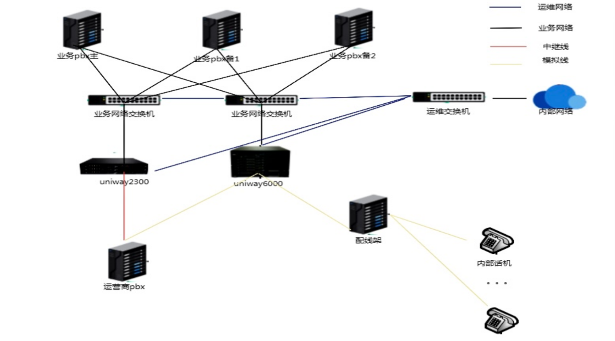 3、中继及用户接入网关采用UNIWAY2300联合网关设备承担,多条数字中继和模拟中继同时接入,实现多种通信线路冗余。